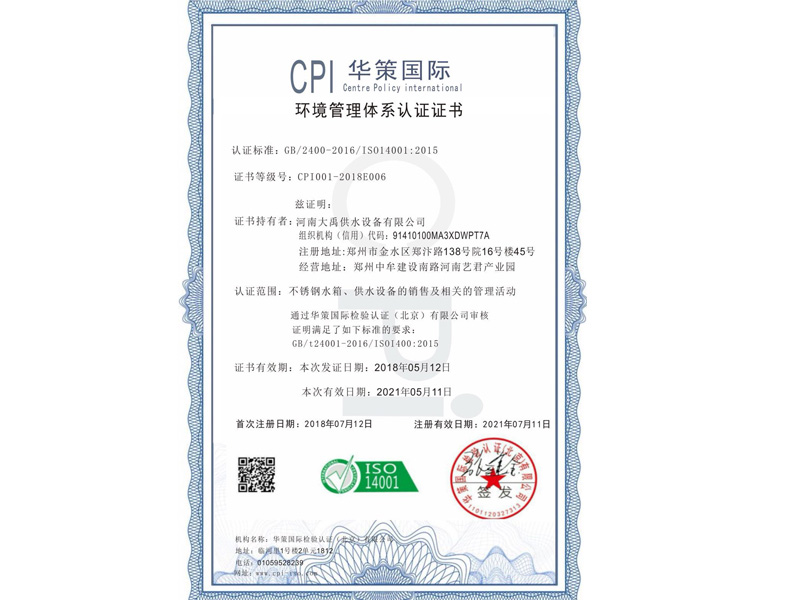 環(huán)境管理體系認(rèn)證證書(shū)